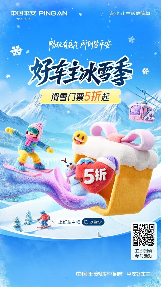 好车主冰雪季12月15日-2月28日,滑雪门票5折起,天天抢100元门票优惠券,还有半价出行···